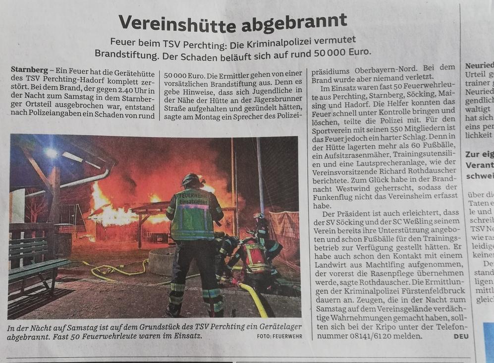 Um all den Sportlern und sonstigen Besuchern eine Heimat zu geben, wurde in den Jahren 1971/72 mit viel Engagement und Eigenleistung ein Sportheim gebaut, und 1979 mit einer kleinen Turnhalle erweitert. Fussballplatz und Stockbahn wurden ebenfalls mit errichtet. Nach nun fast 70 jähriger Existenz hat sich der Verein TSV Perchting-Hadorf als feste Grösse im Landkreis Starnberg etabliert, und ist mit nunmehr ca. 550 Mitgliedern nicht mehr aus dem Dorfleben von Perchting und Hadorf wegzudenken