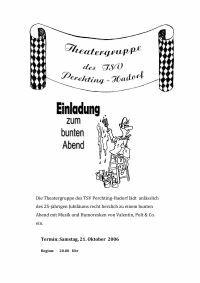 1980 wurde der Anbau am Sportheim in Perchting fertiggestellt. Dass eine kleine Bühne integriert wurde ist dem damaligen Bauleiter Fritz Stadler zu verdanken. Nachdem nun ein Saal und eine Bühne vorhanden waren, liess das erste Stück nicht lange auf sich warten.